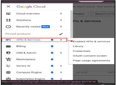 1.2.5. In the left side menu Go to APIs & Services > library.