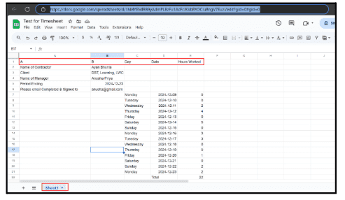 6.9.1. Open Google Sheets, Create a new spreadsheet, and copy its URL.