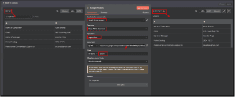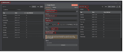 8.2. Configure the Google Sheets1 to clear the existing data before storing new