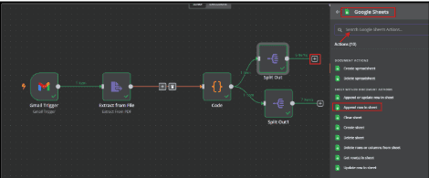 6.1.2. Select the sheet within Document Actions and set it to Append Row in