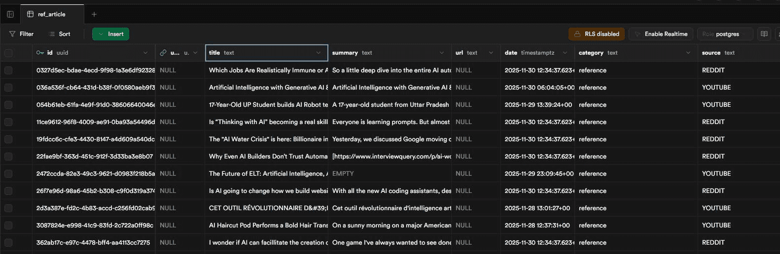 6.3. All valid research items are summarized using AI before being stored in the Supabase database.