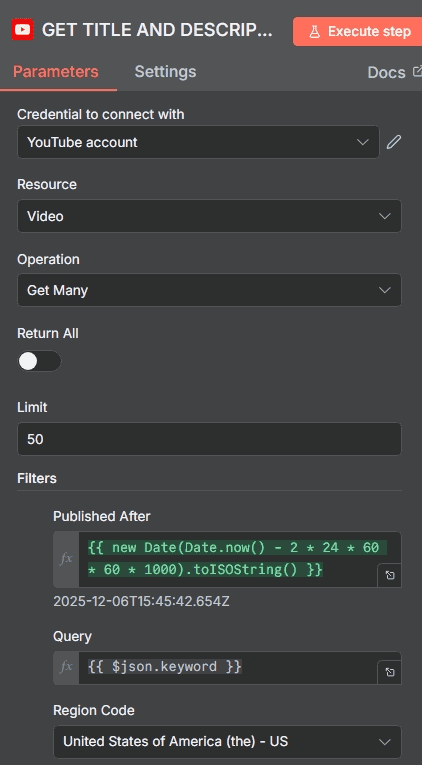 3.3.4. The Published After filter ensures only videos from the last 48 hours are fetched.